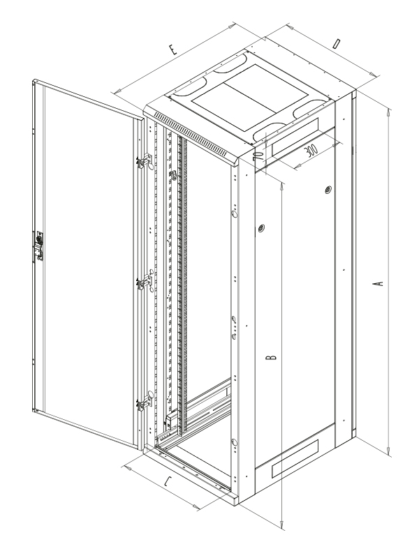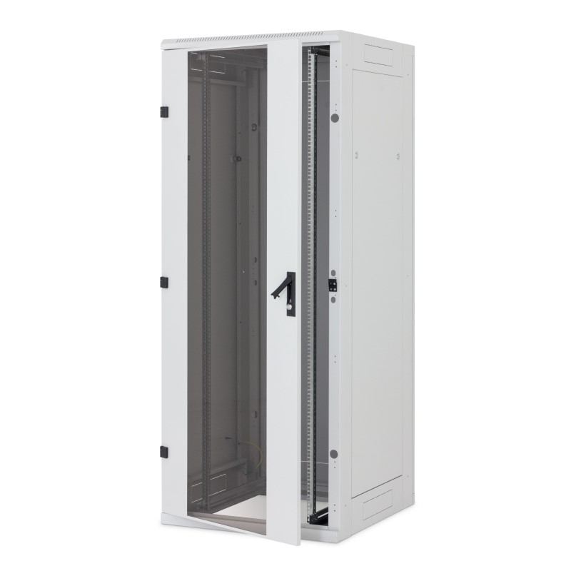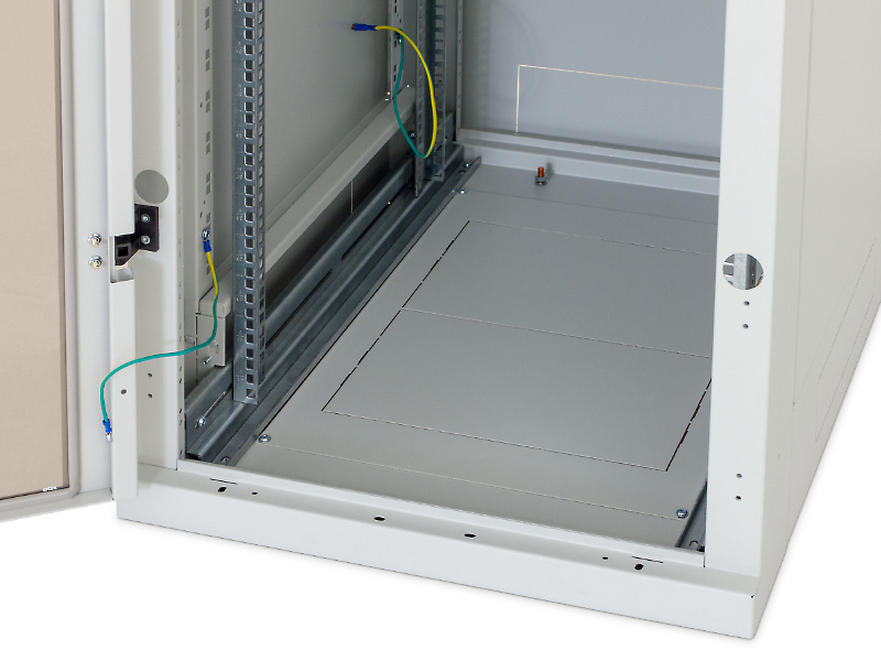 – Dveře jednokřídlé nebo dvoukřídlé ve variantách celoplechové, perforované (80 % a 86 % prostupnost) nebo prosklené s bezpečnostním tvrzeným sklem 4 mm. Mohou být na přední i zadní straně rozvaděče