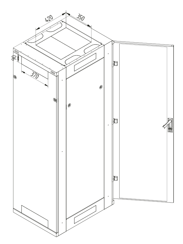 – Dveře jednokřídlé nebo dvoukřídlé ve variantách celoplechové, perforované (80 % a 86 % prostupnost) nebo prosklené s bezpečnostním tvrzeným sklem 4 mm. Mohou být na přední i zadní straně rozvaděče