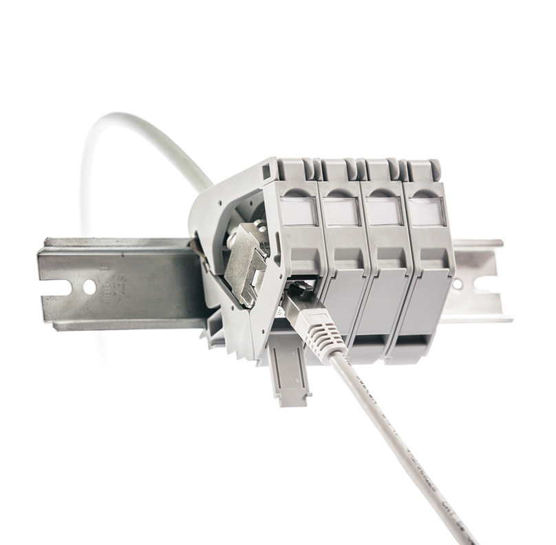 - montovatelná na DIN lištu v domovních, bytových a průmyslových elektrických rozvaděčích (home networking a průmyslový ethernet)